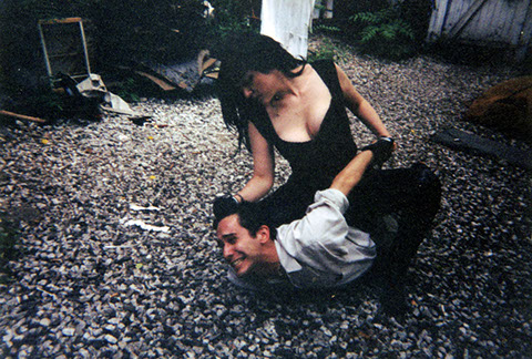 Welcome to mega-lo-budget indie theater circa 1999/2000. Don't have access to the theater and don't have money for rehearsal space? No problem! Just rehearse in your 600-sq-foot Upper East Side one-bedroom apartment! We took these shots the night we did our PR photos (most of which are, sadly, lost), and a few of these were taken as gag shots making fun of the standard theater promo photos. Others were taken because we used to drink during rehearsal. And chain smoke.