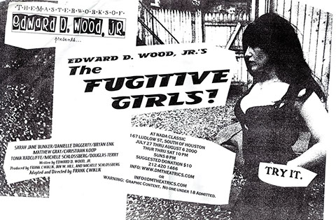 Lower East Side Theater legend Trav S.D. joined forces with DMTheatrics in 2001 to present the continuation of the notorious Masterworks of Edward D. Wood, Jr. festival... ORGY OF THE DEAD! The gripping and baffling non-epic saga of the Emperor and Empress of the Dead came to life on the stage of Surf Reality, home of the turn of the century avant garde burlesque movement, including the legendary Grindhouse-A-Go-Go. Featuring six -- count 'em -- six beautiful babes, bumping and grinding their way through the harrowing stories of lost souls trying to gain their entrance into the underworld by shaking everything they've got for the amusement of the denizens of a very cardboard cemetery, it was a smash cult hit, playing to packed houses for months, and featured a number of future stars of neo-burlesque, including the World Famous Bob, future Miss Coney Island!