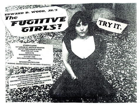 The smash hit of the initial EdFest 2000, The Fugitive Girls! became an instant cult classic, earning sellout business during its initial run and playing to standing room only houses during its 2002 revival. Ed Wood’s obscure sexploitation cult favorite presents four deadly women and their desperate bid for freedom, as they rape, pillage, and plunder their way through late-60’s America, leaving a trail of death, destruction, and horror in their wake. Sex, violence, pop culture, and shocking ugliness are the hallmarks of this gruesome, brutally entertaining bad girl action comedy. With psychotic hippies, swinging bachelors, crazed veterans, toothless hicks, sex, guns, drugs, and rock and roll, and one the ugliest and most unsettling climaxes this side of a snuff movie, this one is definitely NOT for the squeamish.