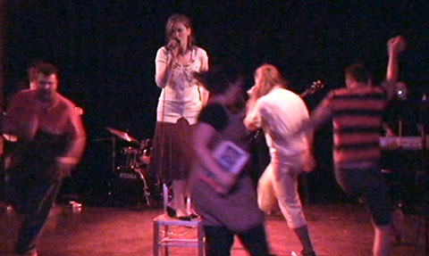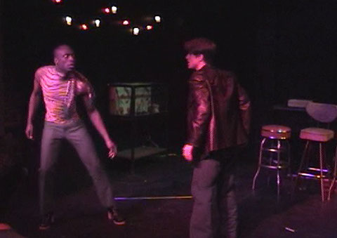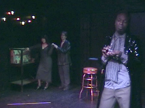 The first in a long and seemingly endless parade of high-octane sex farces from DMT, this rollicking, foul-mouthed, big-hearted sci-fi comedy opened at the late, lamented Todod Con NADA in May/June of 2000 and played a demand encore engagement in August and September of that same year during the 2000 Pure Pop Festival. Inspired by the raunch cinema of the late 1960’s, and drive-in movies of the 1950’s, Amazons in Chains is an inspired melange of audience participation, razor sharp farce, and biting satire on gender politics and the mysteries of romance.