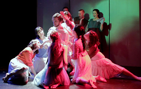 The culmination of DMT's relentless ransacking of the Ed Wood repertory came in the Summer of 2012, when the second of DMTheatrics' festival tributes to Wood, FINAL CURTAIN: THE LAST OF ED WOOD, played as the company's bittersweet swan song to its longtime home, the Red Room. Consisting of five startlingly different productions of Wood classics and obscurities (see below), this month-long extravaganza was both the most ambitious and most audacious project yet attempted by director Frank Cwiklik, its unique and daunting scope attracting press attention from the New York Times, Time Out New York, and others. Seemingly the final word on the glory of Ed from his most unlikely postmortem collaborator, this extraordinary festival was among the last of its kind, a heartfelt farewell to a misunderstood artist and a vanishing era. See our Ed Wood repertory page for individual show listings (Bride of the Monster, Night of the Ghouls, The Violent Years, Hot Ice, and The Sinister Urge!)
