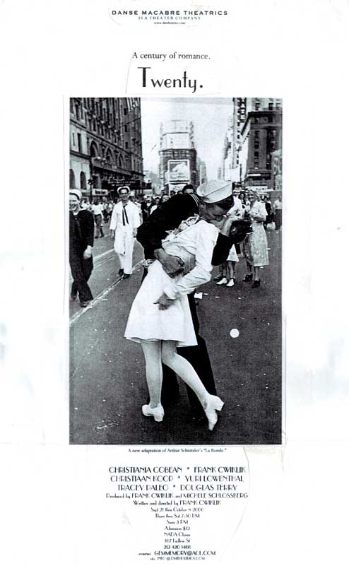 Originally staged as the swan song of the legendary Todo Con Nada in late 2000, Twenty was a startling and moving change of pace for DMTheatrics, and an impressive showcase for its tireless company of actors and artists. Both breathlessly romantic and wrenchingly honest, this melancholy, nostalgic look at the American Century neatly summarized DMTheatrics' reputation for engaging, immersive, human theater. Both a history of New York City's rise, fall, and rise again throughout the turbulent 1900's, and a sexy, bawdy glimpse into the lives of its citizens, Twenty enchanted, delighted, and moved its audiences again when it was staged in 2004 in the Red Room,.