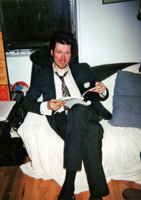Welcome to mega-lo-budget indie theater circa 1999/2000. Don't have access to the theater and don't have money for rehearsal space? No problem! Just rehearse in your 600-sq-foot Upper East Side one-bedroom apartment! We took these shots the night we did our PR photos (most of which are, sadly, lost), and a few of these were taken as gag shots making fun of the standard theater promo photos. Others were taken because we used to drink during rehearsal. And chain smoke.