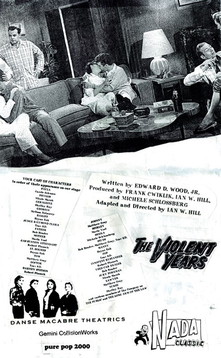Originally mounted by indie theater legend Ian W. Hill during the original 2000 EdFest as a wry spoof of 1950s juvenile delinquency programmers, The Violent Years! was radically reinvisioned for the 2012 festival as a pop culture assault in the tradition of DMT's classic Ed adaptation, The Fugitive Girls!. The result was a rattling, painful onslaught of sight and sound that acted as a bracing tonic against the other, lighter shows in the fest. A short, sharp jab to the gut, this startling girl gang classic was a pitiless poisoned bon bon that polarized and startled audiences.